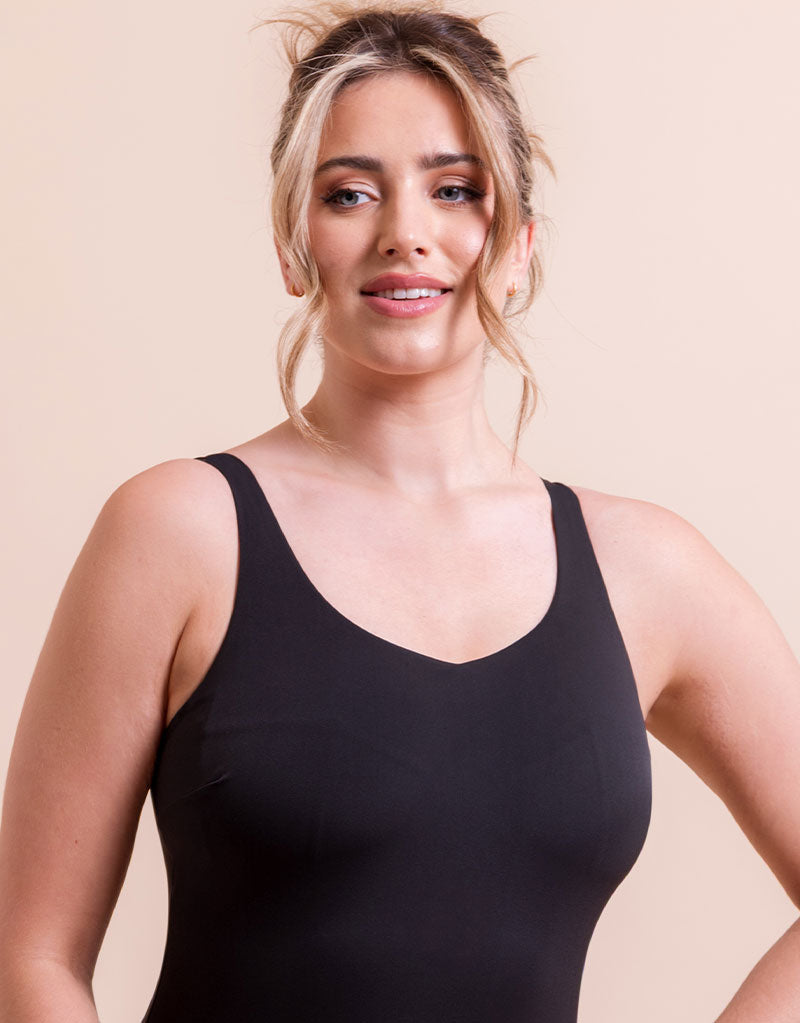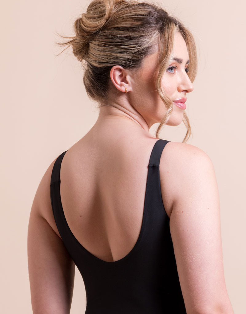 - Square neckline for a secure and flattering fit