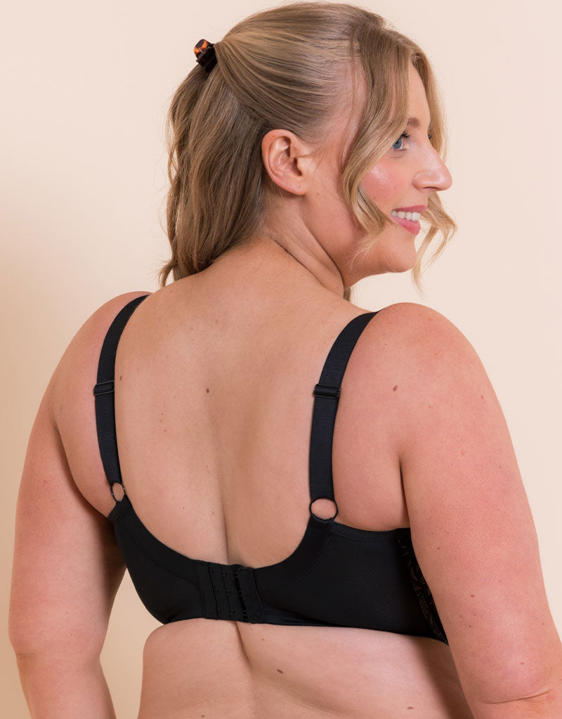 The Lovelace Full Cup Side Support Bra has been meticulously crafted with your comfort and confidence in mind, in easy to style back with taupe lining. Featuring a smooth, graphic floral lace, this collection is designed to offer the perfect blend of support and elegance, with all-day wearability that doesn't compromise on style.